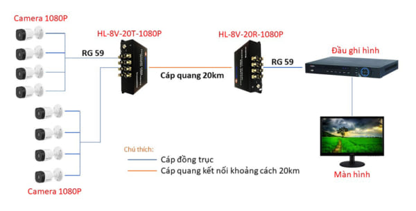 - Bộ chuyển Video sang quang HL-8V-20T/R-1080P
