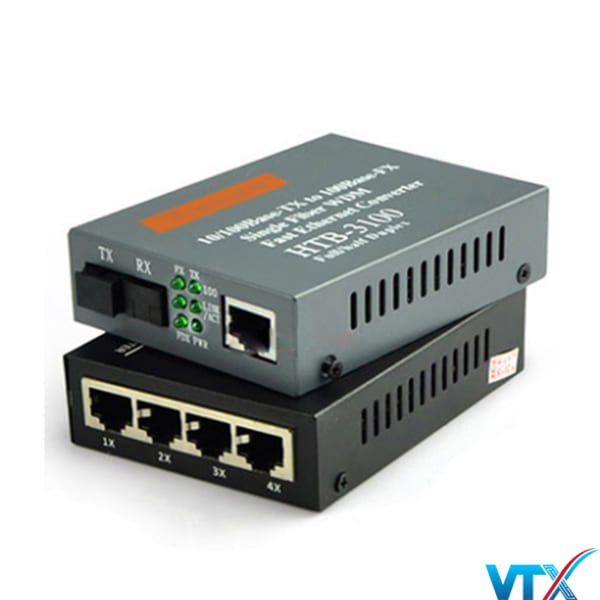 Bộ chuyển đổi quang điện 1 sợi ra 4 cổng 10/100Mbps sử dụng 1 sợi quang để truyền tín hiệu, tốc độ truyền tải 10/100mbps, khoảng cách truyền 20km, có thể lên tới 120km. Hàng chính hãng bảo hành 1 năm, đầy đủ giấy tờ chứng minh xuất xứ, chất lượng. Sản phẩm có tính tương thích cao với các sản phẩm cùng cấu hình của hãng khác. Bộ Chuyển đổi quang điện với kết nối 1 cổng J45 đầu vào, và 4 Cổng J45 đầu ra.thông qua cáp quang 1 FO.