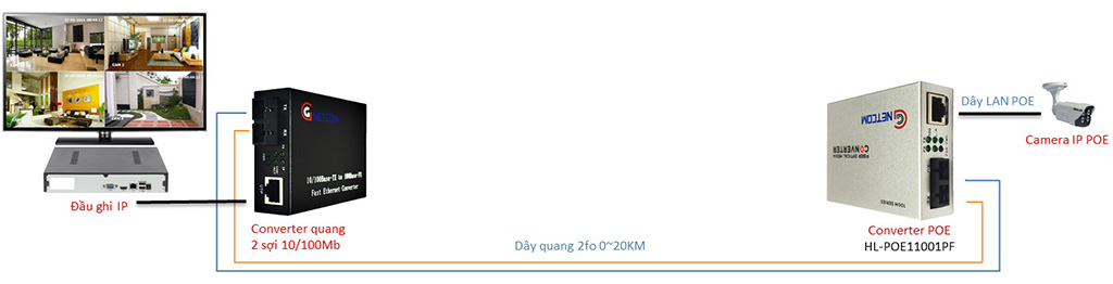 Các loại Converter Switch mạng POE là thiết bị sử dụng để cấp nguồn và mạng cho camera IP và các thiết bị khác sử dụng nguồn DC. Ngày nay hầu hết các camera IP đều hỗ trợ công nghệ cấp nguồn qua cổng POE. Do đó, Switch cấp nguồn PoE này là sản phẩm không thể thiếu khi lắp đặt hệ thống camera IP. Converter Quang POE GNETCOM 10/100Mbps HL-POE11001PF ( hay được gọi là Switch quang POE 1 port ) hỗ trợ chức năng POE, đáp ứng tiêu chuẩn IEEE 802.3af. Chúng có 1 cổng tự động, tự học địa chỉ và giải quyết việc chuyển tiếp gói tin trong mạng.