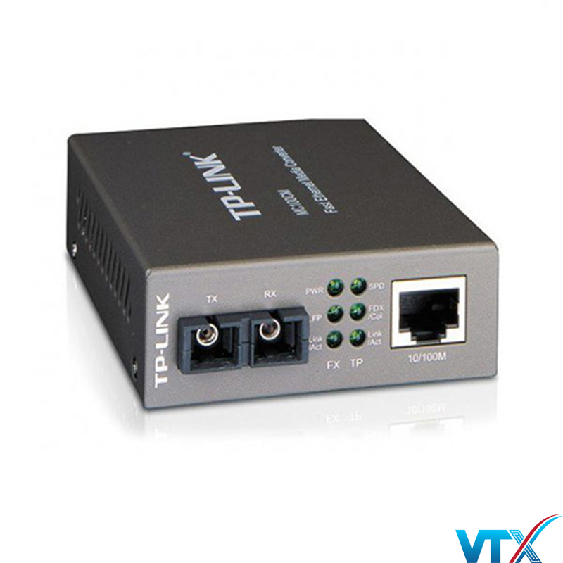 Bộ chuyển đổi quang điện media converter MC110CS là một bộ chuyển đổi quang điện được thiết kế để chuyển đổi các tín hiệu truyền thông 100BASE-FX cáp quang sang 100BASE-TX cáp đồng và ngược lại. TP-Link MC110CS Thiết kế theo chuẩn IEEE 802.3u 10/100Base-TX và 100Base-FX. MC110CS là thiết kế để sử dụng với cáp quang chế độ single-mode dùng trong kiểu kết nối SC-type. MC110CS hỗ trợ đặc tính tia laser bước sóng dài(LX) khi tốc độ chuyển tiếp dây dẫn đầy đủ. Converter quang TP-Link MC110CS Làm việc ở bước sóng 1310nm ở cả truyền và nhận dữ liệu.