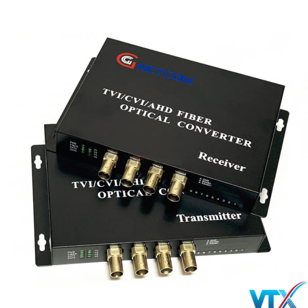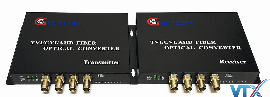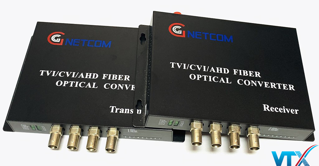 Bộ chuyển đổi Video sang quang- Converter video quang GNETCOM 4 kênh 720p AHD/CVI/TVI. là thiết bị chuyển đổi tín hiệu video chuẩn HDTVI, HDCVI, AHD độ phân giải là 1080P sang tín hiệu cáp quang và ngược lại. Nó tương thích hoàn toàn với các sản phẩm camera quan sát sử dụng chuẩn HDTVI, HDCVI, AHD, trên thị trường như HIKVISION, DAHUA, D-MAX,…