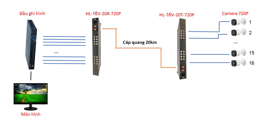 - Bộ thu phát video quang, converter quang HL-16V-20T/R-720P