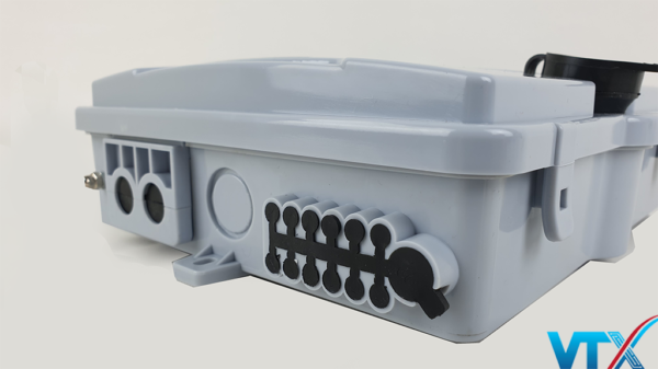 Tất cả các lỗ để đường cáp đi qua có 2 lớp cố định: 1 lớp cao su đệm bên trong và 1 khóa nhựa xoắn bên ngoài để đảm bảo đường cáp đều được cố định; ngăn chặn chôn trùng, hơi nước cũng như bụi bẩn có thể lọt vào bên trong ảnh hưởng đến mối nối hàn và các thiết bị bên trong ODF ngoài trời.