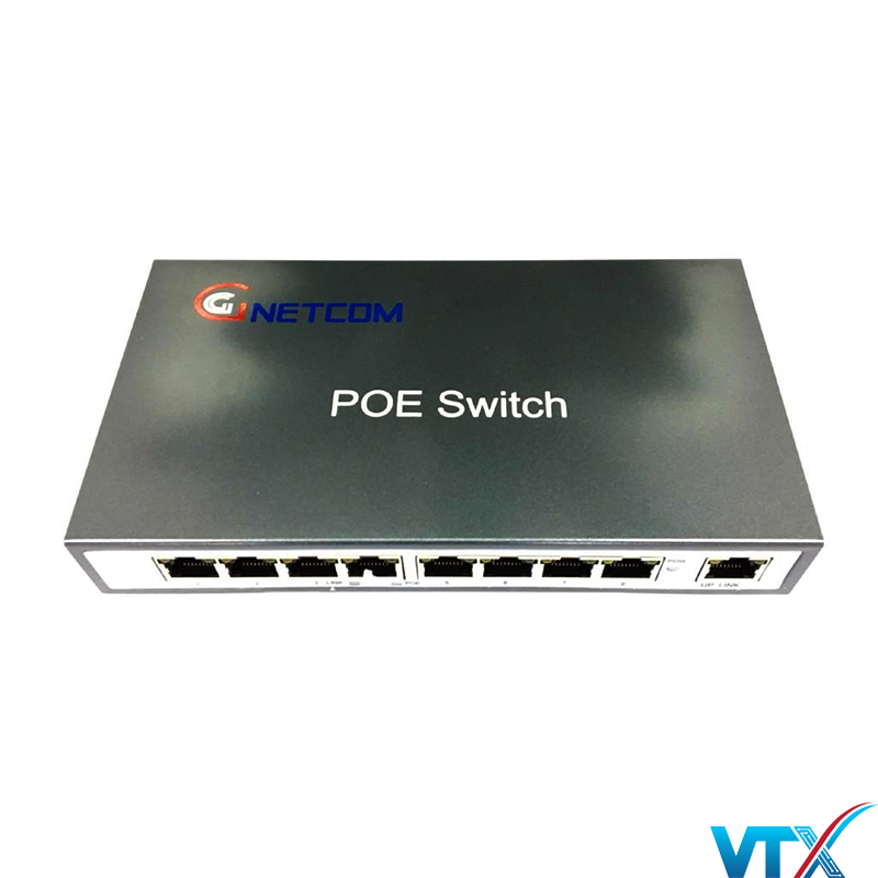 Switch POE GNETCOM 8 Cổng 10/100Mbps với tốc độ 10/100Mbps hỗ trợ chức năng POE, đáp ứng tiêu chuẩn IEEE 802.3af. Switch có 9 cổng 10/100M RJ45 ports (có 8 cổng PoE – có tính năng cấp nguồn qua cáp mạng cho các thiết bị PoE khác), vỏ sắt W)