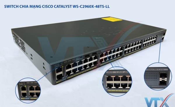 Switch Cisco WS-C2960X-48TS-LL 48 cổng LAN Lite bao gồm 48 cổng Ethernet 10/100/1000 và giao diện SFP 2 x 1G. LAN Lite hình ảnh chức năng nhu cầu cơ bản cho lớp 2 (Layer 2) chuyển đổi và không hỗ trợ xếp chồng (Stack).