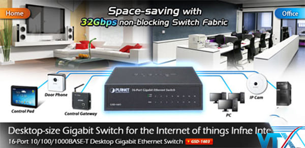 Switch chia mạng PLANET GSD-1603 16Port hỗ trợ bảng đia chỉ MAC 8K, cấu trúc chuyển mạch đến 32 Gbps và thông lượng tại tốc độ dây là 23.8 Mpps, rất phù hợp nâng cấp tại các cơ sở hạ tầng mạng LAN đáp ứng nhu cầu ngày càng tăng về băng thông.