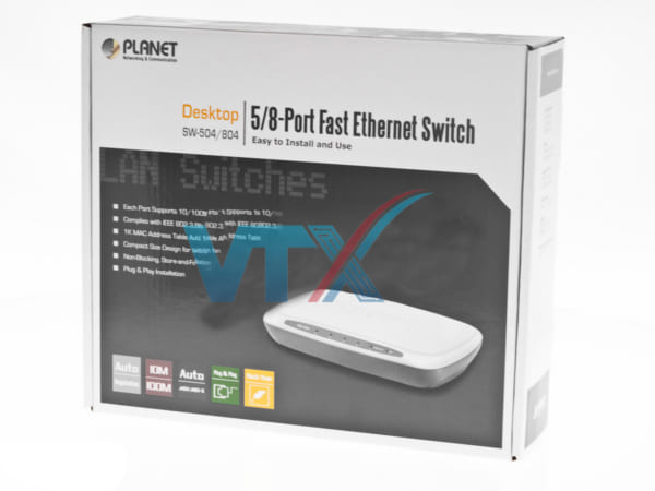 Switch chia mạng PLANET SW-804 8Port 10/100Mbps là một trong những thiết bị không thể thiếu ở mọi gia đình, công ty, nhà máy … dùng để kết nối các đoạn mạng với nhau theo mô hình mạng hình sao (Star). Theo mô hình này, thiết bị đóng vai trò là switch trung tâm, tất cả các máy tính đều được nối về đây trong một hệ thống mạng.
