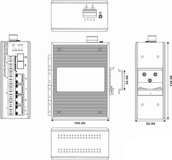 Switch công nghiệp 3Onedata hỗ trợ chuẩn IEEE802.3/802.3u/802.3x, cung cấp giải pháp cho hệ thống mạng công nghiệp với chi phí hiệu quả, ổn định, ít tốn kém. Chế độ bảo vệ theo chuẩn IP40, LED hiển thị giúp theo dõi kiểm soát hệ thống mạng của bạn. Tươngthích chuẩn FCC, CE.