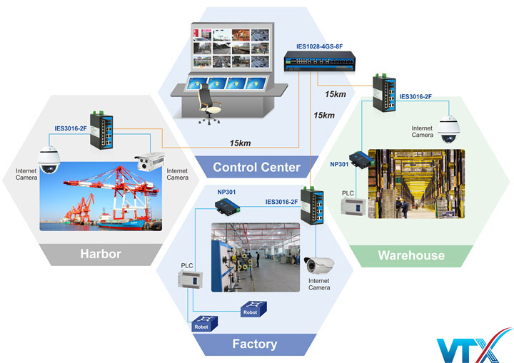 3Onedata IES5028-4GS gồm 8 cổng Ethernet + 8 cổng SFP Gigabit giúp bạn dễ dàng mở rộng hệ thống mạng từ nhà xưởng lên văn phòng điều khiển khi có thể cắm trực tiếp module quang và sử dụng cáp quang Single mode.