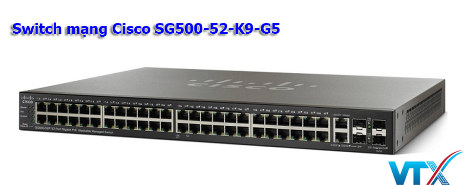 Switch mạng Cisco SG500-52-K9-G5 thuộc dòng thiết bị chuyển mạch dòng 500 Series cung cấp bộ tính năng tiên tiến mà các doanh nghiệp đang phát triển đòi hỏi, và các ứng dụng băng thông rộng và công nghệ đòi hỏi.