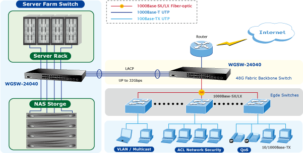 Công nghệ chuyển đổi L2 / L4 phong phú được cung cấp bởi Switch WGSW-24040 thực hiện kiểm soát lưu lượng dữ liệu hiệu quả cho các doanh nghiệp và các nhà cung cấp dịch vụ VoIP, các ứng dụng video streaming và multicast.