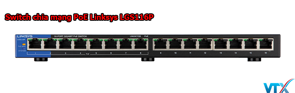 Switch mạng PoE Linksys LGS116P 16 port Gigabit