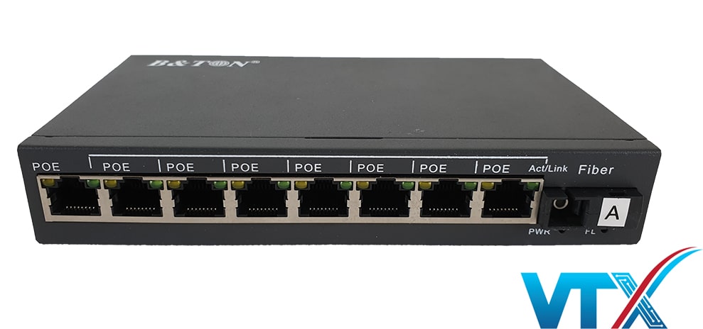 Với nhiều năm kinh nghiệm sản xuất Switch chia mạng tại Trung Quốc của B&TON. Các sản phẩm Switch chia mạng B&TON đang từng bước đặt chân vào thị trường Việt Nam với chất lượng sản phẩm cùng giá thành rất rẻ hứa hẹn sẽ là đối thủ đáng gờm với các nhãn hiệu đã rất quen thuộc với chúng ta nhiều năm qua như PLANET, Cissco, TP-Link. Hôm nay Viễn thông xanh sẽ giới thiệu các bạn một sản phẩm được ưa chuộng nhất đó là Switch PoE BT-6108 FE-25A BTON