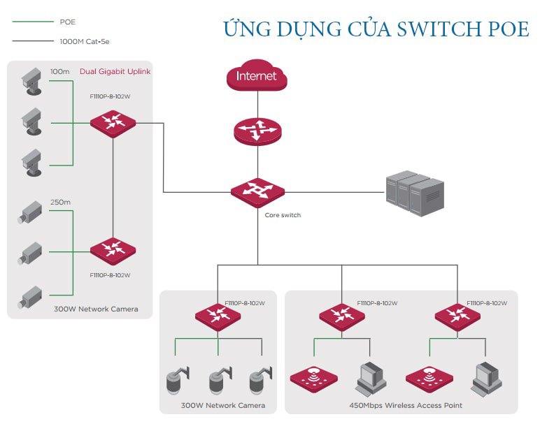 Switch cấp nguồn POE ngày càng được sử dụng phổ biến và rộng rãi. Nó Được biết đến là một thiết bị đa năng với sự thích ứng tuyệt vời với nhiều loại thiết bị. Cho dù bạn đang cần cung cấp điện năng, truyền tải dữ liệu cho những thiết bị nối mạng hay sử dụng IP đều có thể thực hiện được với duy nhất một đường truyền trên POE. Vì điều này bạn có thể thoải mái bố trí các thiết bị phục vụ cho nhu cầu làm việc của mình mà không ngại đến việc dây dẫn chằng chịt hay sự cản trở chia sẻ thông tin.