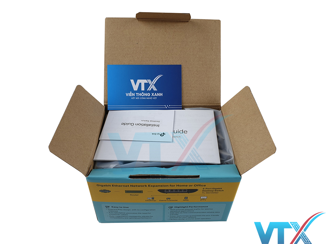 Sản phẩm bao gồm Switch Để Bàn 5 cổng Gigabit TL-SG1005D