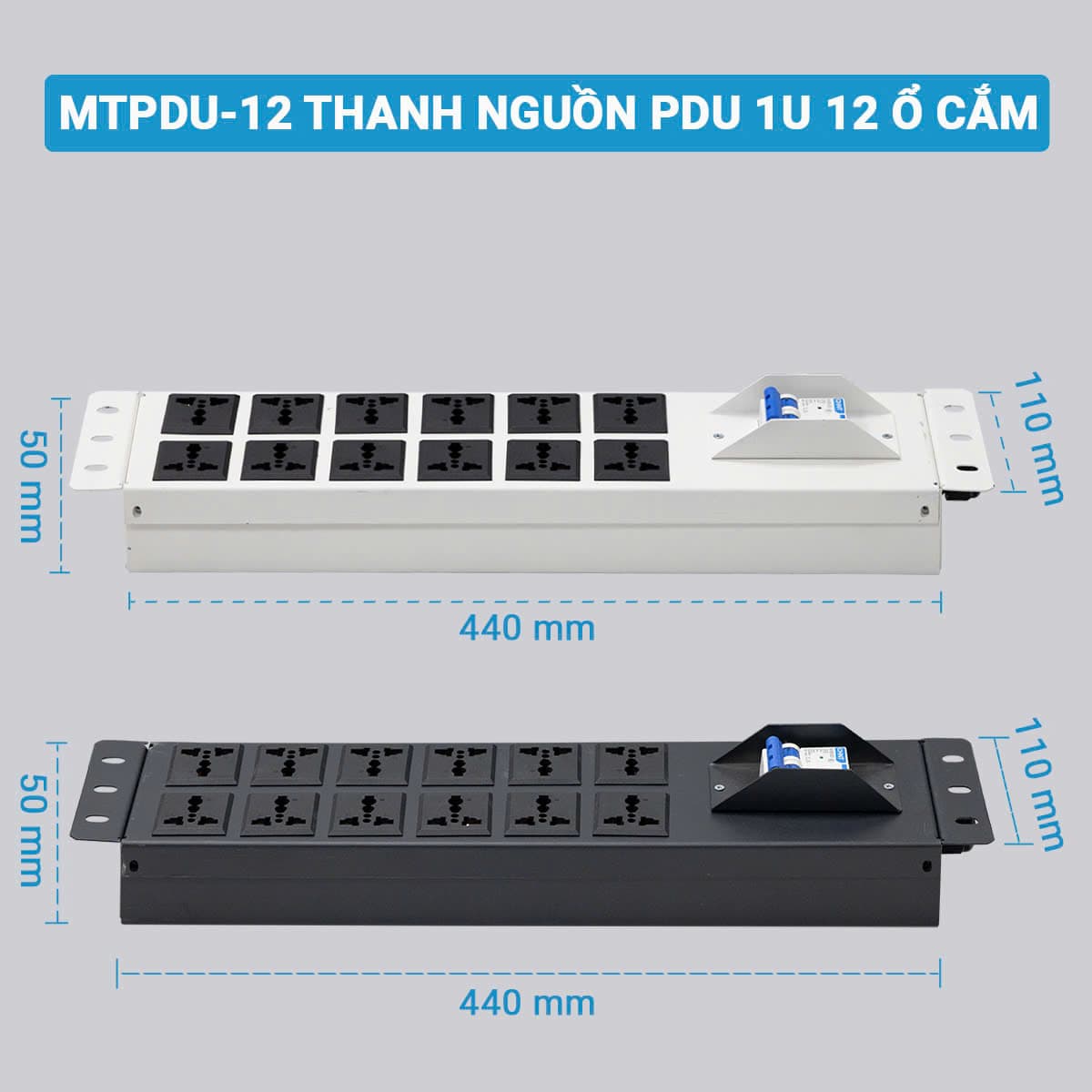 MTPDU-12 có hai lựa chọn màu sắc đen hoặc trắng, phù hợp với nhiều loại tủ rack khác nhau. Với kích thước 2U, thanh nguồn PDU Maxtel – MTPDU-12 cung cấp không gian rộng rãi để quản lý nguồn điện một cách hiệu quả mà vẫn tiết kiệm diện tích tủ rack.