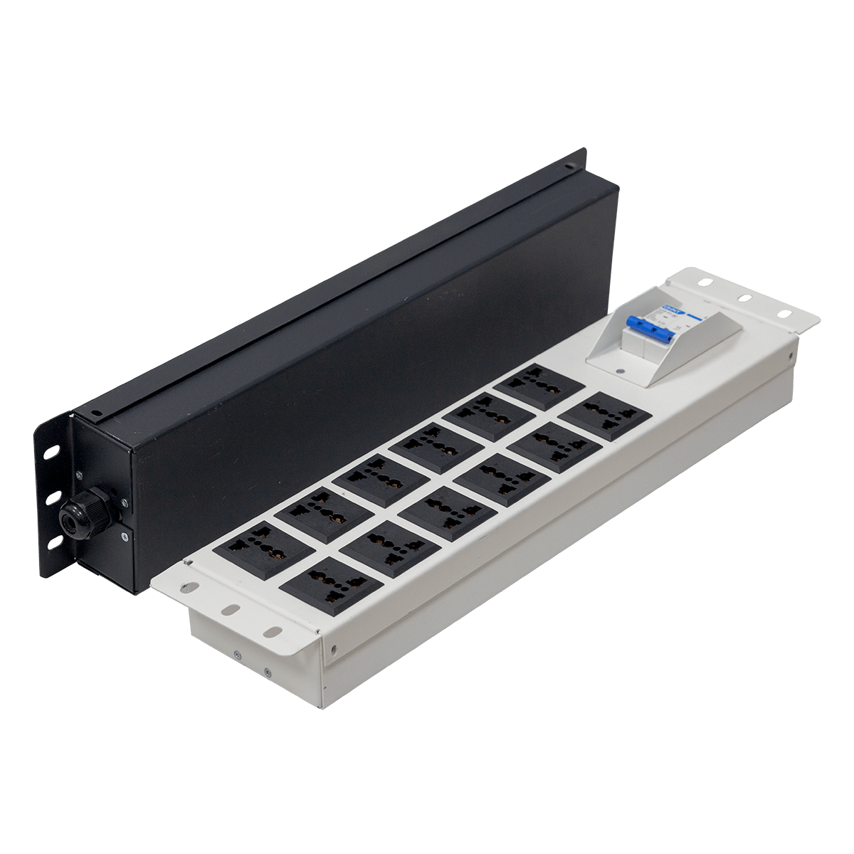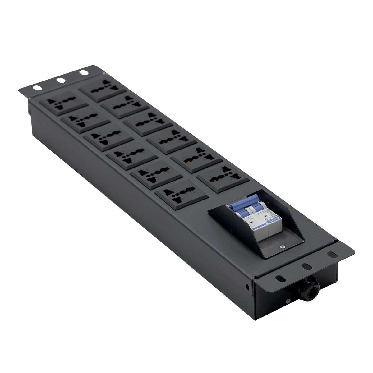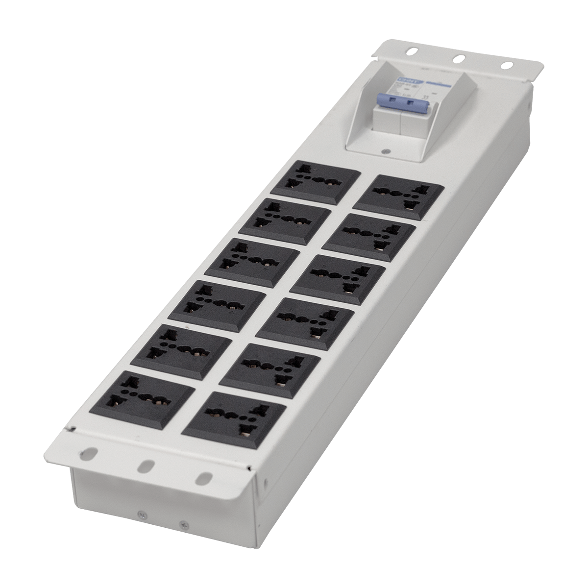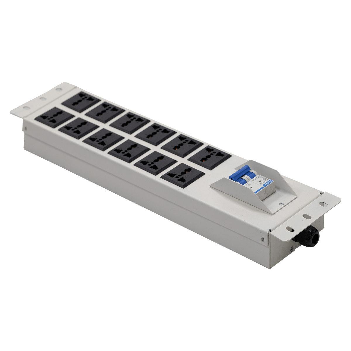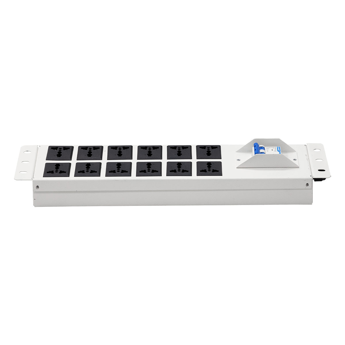 Thanh nguồn được trang bị 12 ổ cắm đa năng (3 chấu), cung cấp khả năng kết nối linh hoạt, đáp ứng nhu cầu sử dụng điện cho nhiều loại thiết bị khác nhau.