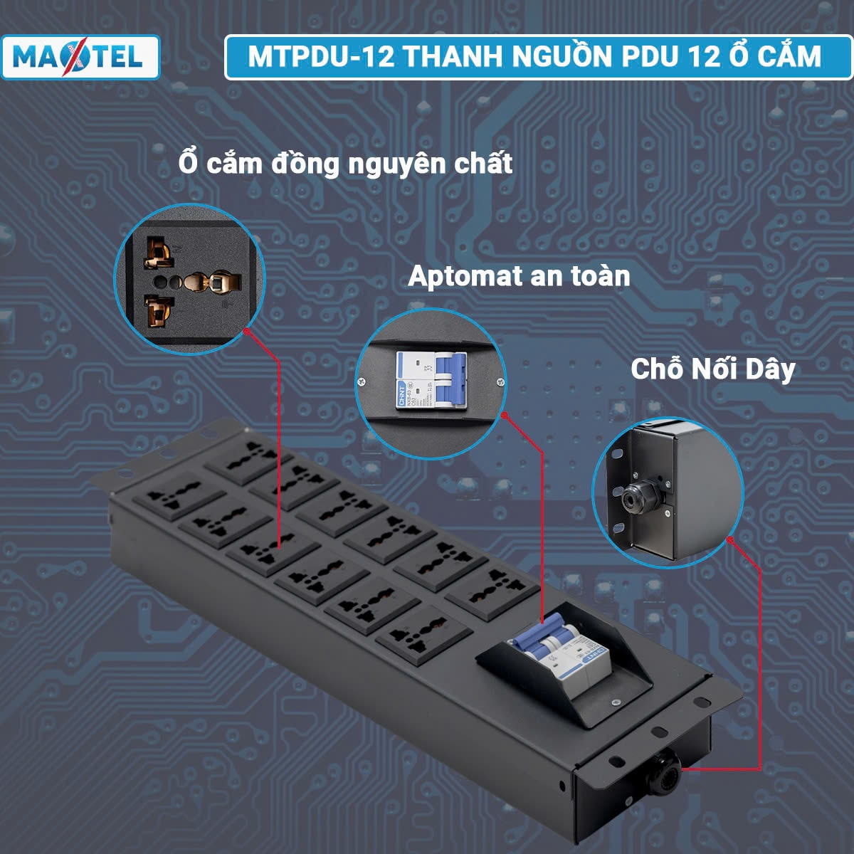 Thanh nguồn PDU 12 ổ đa năng có át Maxtel | MTPDU-12 |