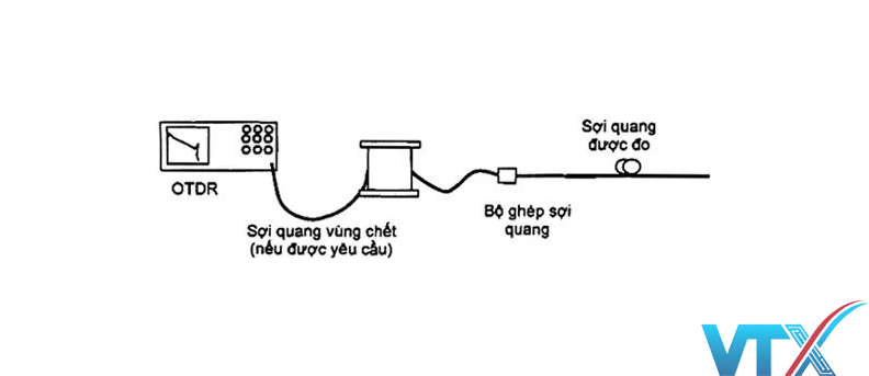 Nối máy OTDR với sợi quang trên bằng một dây nối, cuộn sợi đệm (nếu được yêu cầu) và bộ chuyển đổi sợi quang trần