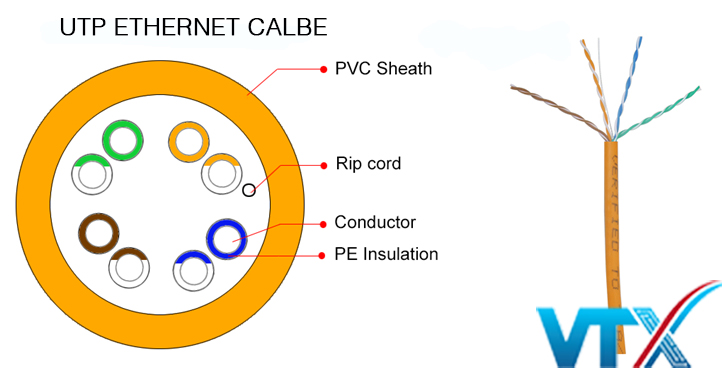 UTP ( Unshielded Twisted Pair) là loại cáp mạng không có vỏ bọc chống nhiễu, còn được gọi là cáp xoắn đôi không chống nhiễu được sử dụng phổ thông nhất, đây là loại cáp thường trong cuộc sống hiện nay.