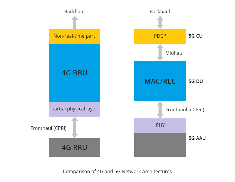Công nghệ 5G cải tiến việc truyền tải của các bộ thu phát và chip IC 25G / 50G / 100G / 200G / 400G5G tái cấu trúc đơn vị băng tần cơ sở 4G (BBU), thiết bị điều khiển từ xa vô tuyến (RRU) và ăng-ten thành đơn vị tập trung (CU), đơn vị phân tán (DU) và đơn vị ăng-ten hoạt động (AAU). Những thay đổi này đã đưa ra các yêu cầu mới đối với các bộ thu phát quang để đáp ứng các yêu cầu về băng thông và khoảng cách liên quan đến các liên kết quan trọng trong cấu trúc mạng 5G. Mạng 5G yêu cầu mật độ trạm cao hơn, do đó nhu cầu về máy thu phát quang tốc độ cao sẽ tăng đáng kể. Dự kiến các bộ thu phát quang 25G / 100G sẽ là giải pháp ưa thích của mạng lưới thu phát quang công nghệ 5G. Theo báo cáo từ EJL Wireless Research, doanh thu cho thị trường thu phát quang phía trước (OTRX) sẽ đạt 630 triệu đô la vào năm 2021, nhờ các giải pháp OTRX 25G và 100G được hỗ trợ công nghệ Massive MIMO(Massive Multiple-Input Multiple-Output) 5G. Mạng 5G sẽ phụ thuộc đáng kể vào các bộ thu phát quang 25G, người ta ước tính rằng thị trường mô-đun quang 25G được dự đoán sẽ đạt mức 2 triệu nhu cầu vào năm 2021 khi các nhà mạng đang bắt đầu chuẩn bị để có được cơ sở hạ tầng và hệ thống sẵn sàng để tạo điều kiện cho việc chuyển đổi sang 5G. Bộ thu phát quang 100G cũng được coi là giải pháp ưa thích của mạng lưới cáp quang. Vào năm 2019, bộ thu phát 100G, cùng với các mô-đun 25G, đã được phát triển cho các cài đặt tiêu chuẩn để đáp ứng nhu cầu về tốc độ cao của các ứng dụng và dịch vụ thương mại 5G. Trong các mạng fronthaul yêu cầu tốc độ cao hơn, các bộ thu phát 100G PAM4 FR / LR và 100G PAM4 DWDM có thể được sử dụng. Nhu cầu về các mô-đun quang 50G chủ yếu đến từ việc xây dựng mạng chịu tải 5G, thị trường này dự kiến sẽ đạt 10 triệu sản phẩm khi hệ thống mạng lưới 5G được áp dụng rộng rãi. Hiện nay nhu cầu về bộ thu phát quang 100G của mạng 5G là cần thiết và các nhà cung cấp dịch vụ sẽ yêu cầu băng thông 200G và 400G để đạt được đủ lượng băng thông cần thiết cho việc triển khai 5G. Tập đoàn Dell’Oro ước tính rằng doanh thu thiết bị vận tải đường trục 5G sẽ đạt 3 tỷ USD vào năm 2024. Điều này thúc đẩy nhu cầu ngày càng tăng đối với các máy thu phát 100G, 200G và 400G. Từ nửa cuối năm 2019, việc thương mại công nghệ 5G đã được đi đầu bởi các tập đoàn viễn thông lớn như: China Mobile, China Telecom, China Unicom, Korea Telecom, SK Telecom, LG Uplus, Verizon, AT & T và T-Mobile. Điều này đã thúc đẩy nhu cầu và tạo cơ hội lớn cho thị trường thiết bị thu phát quang. Một báo cáo từ Research and Markets đã dự đoán rằng quy mô thị trường thu phát quang toàn cầu được dự đoán sẽ tăng từ 5,7 tỷ USD vào năm 2020 lên 9,2 tỷ USD vào năm 2025, tăng trưởng với tốc độ CAGR (tỷ lệ tăng trưởng kép hàng năm) là 10,0% từ năm 2020 đến năm 2025.
